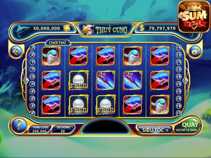 Thủy Cung Sumclub là một Slot Game 3D với chủ đề đại dương, nổi bật với đồ họa 3D sống động, âm thanh chân thực và sự đa dạng của sinh vật biển (biểu tượng). Game sử dụng cơ chế 5 cột x 3 hàng với 20 dòng cược (Paylines), mang lại tỷ lệ Nổ Hũ Jackpot hấp dẫn (giá trị Jackpot thường xuyên vượt 1 tỷ VND).